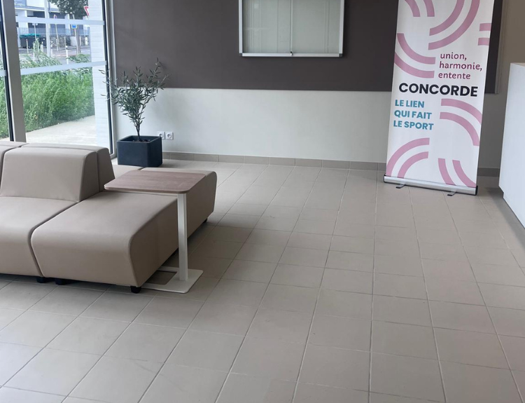 Les travaux ont également porté sur la réalisation des escaliers et des tribunes, dans le respect des exigences esthétiques et techniques du projet.